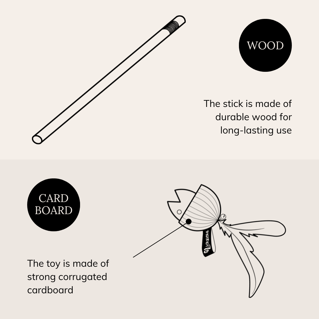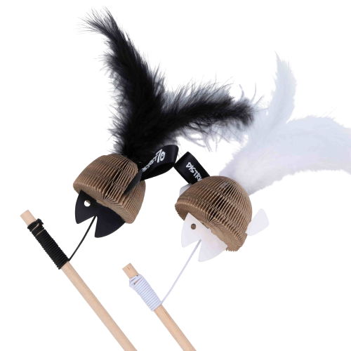 District 70 BAIT Natural Wood Wand Cat Toy, White – ديستريكت 70 بايت — للقطط