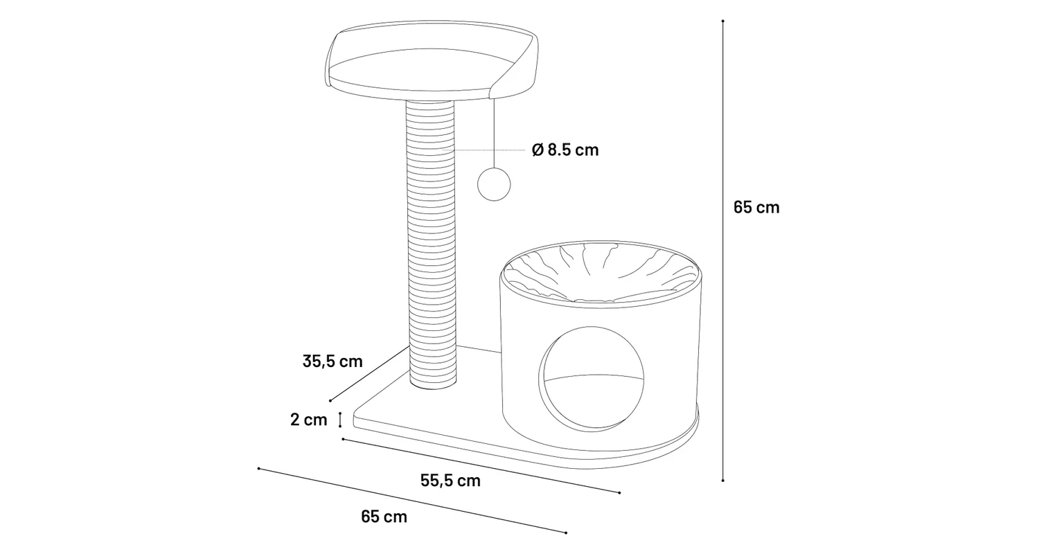 • Thickness base plate: 2 cm and diameter scratching post: 8,5 cm