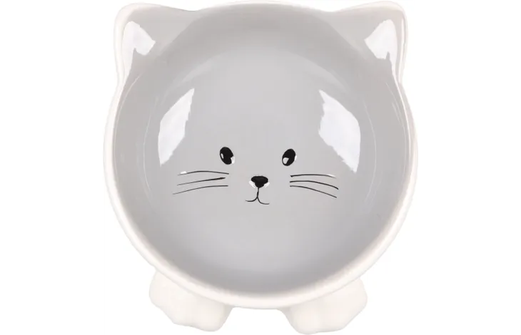 Flamingo Puzi Ceramic Cat Bowl, Grey – فلامينجو بوزي كيراميك — للقطط