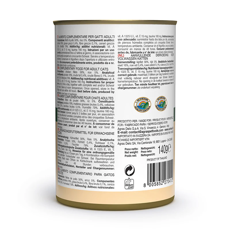 Schesir Chicken Fillets Wet Cat Food, 140g – شيسير تشيكين فيلليتس — للقطط طعام رطب بنكهة الدجاج، 140 جم