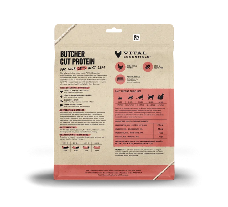 Vital Essentials Chicken Mini Patties Dry Cat Food 8 oz – فيتال يسسينتيالس تشيكين — للقطط طعام جاف بنكهة الدجاج