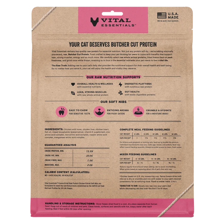 Vital Essentials Chicken Soft Nibs Dry Cat Food, 12 oz – فيتال يسسينتيالس تشيكين — للقطط طعام جاف بنكهة الدجاج