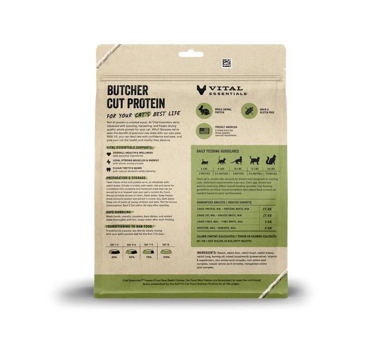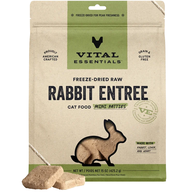 Vital Essentials Rabbit Mini Patties Dry Cat Food 8 oz – فيتال يسسينتيالس راببيت — للقطط طعام جاف بنكهة الأرنب