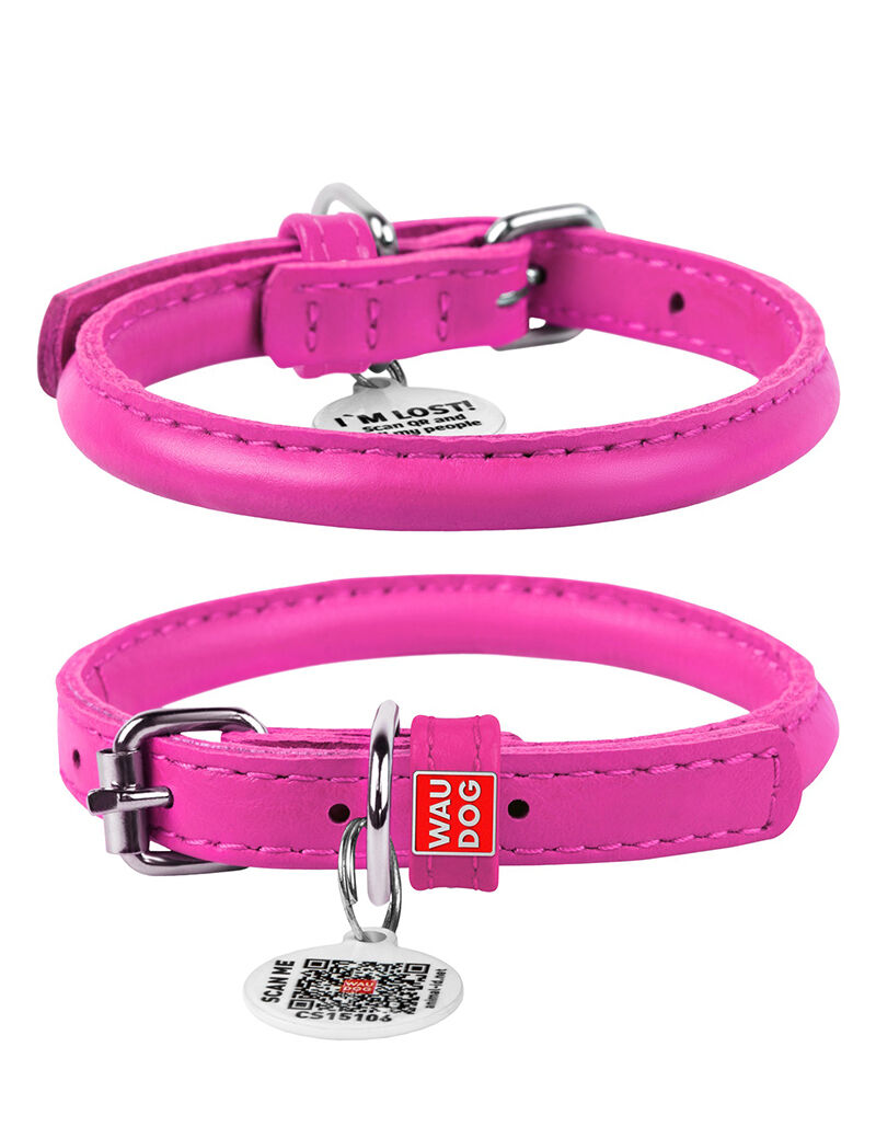 Waudog Glamour Leather Cat Collar with QR Tag, Pink, 22 to 30 cm – أواودوج جلامور لياثير — للقطط للكلاب