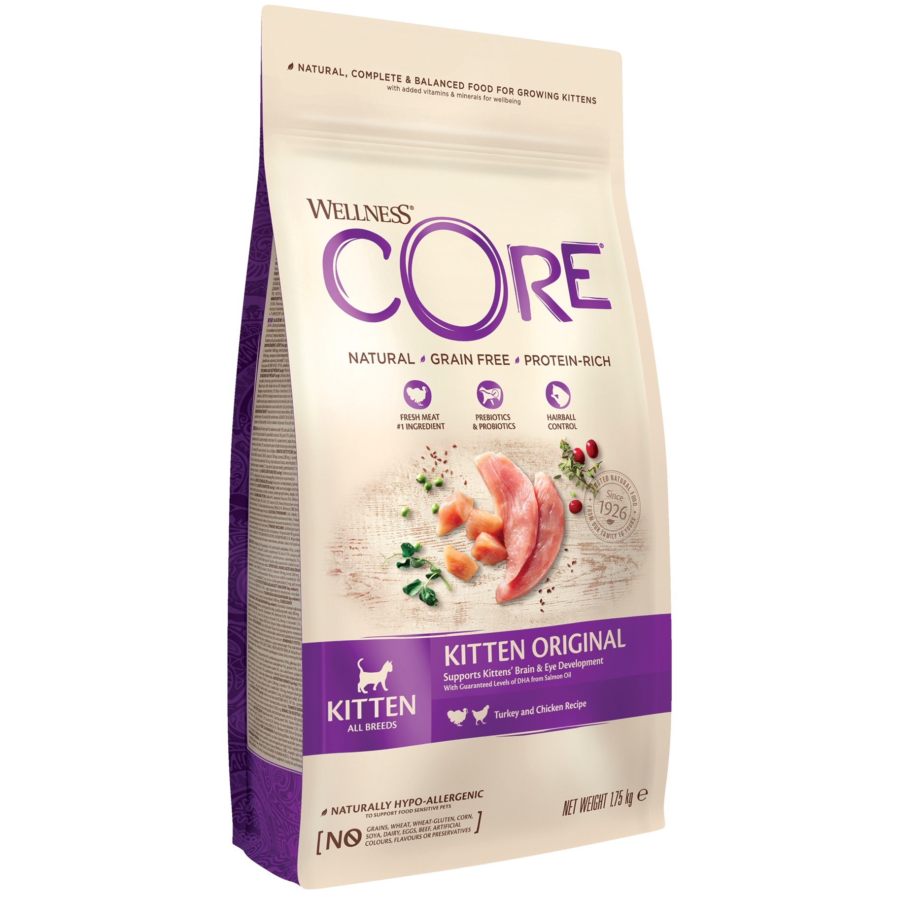 Wellness CORE Grain Free Turkey and Chicken Recipe Dry Kitten Food, 1.75 kg – أويللنيسس كوري جراين — للقطط طعام جاف بنكهة الدجاج خالٍ من الحبوب القطط الصغيرة، 1.75 كجم